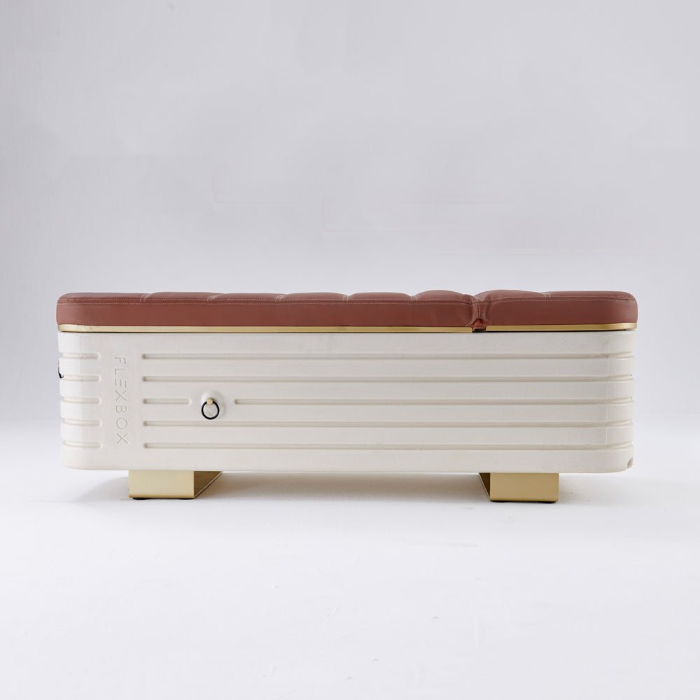 Flexbox is a complete home gym cleverly disguised as a sleek, modern bench—designed to elevate your fitness and your space.
