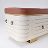 Midnight – A bold black body paired with a jet-black, premium vegan leather top. Framed in brushed gold trim and legs, with sleek black hardware for a look that’s modern, powerful, and unapologetically sleek. A true statement piece for high-impact spaces.